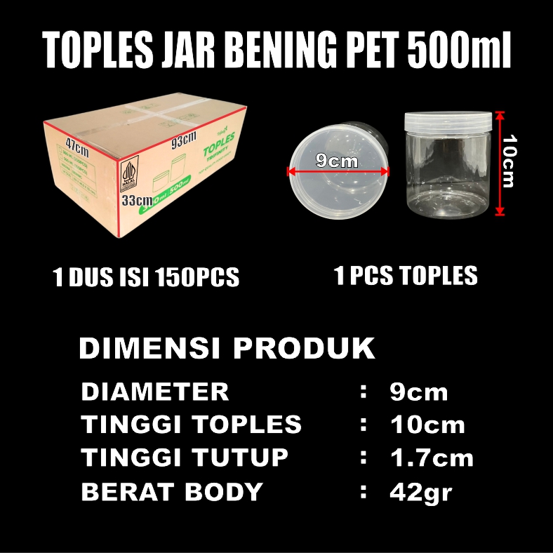 Toples 500ml Bal 150pcs Jar Silinder Bening Pet